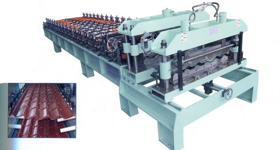 A máquina adota a tira de aço do metal enrolado como a matéria prima, que é desenrolada, rolado continuamente e formado a frio, e cortado automaticamente ao comprimento para produzir placas de formas e de especificações específicas. A máquina inteira adota a tecnologia regulamentar da velocidade da conversão do controle do PLC e de frequência da C.A. para realizar a produção automática contínua. É um equipamento de produção ideal para indústrias de processamento de dobra do frio da construção e do metal de aço.